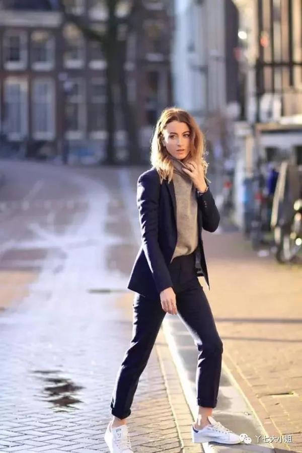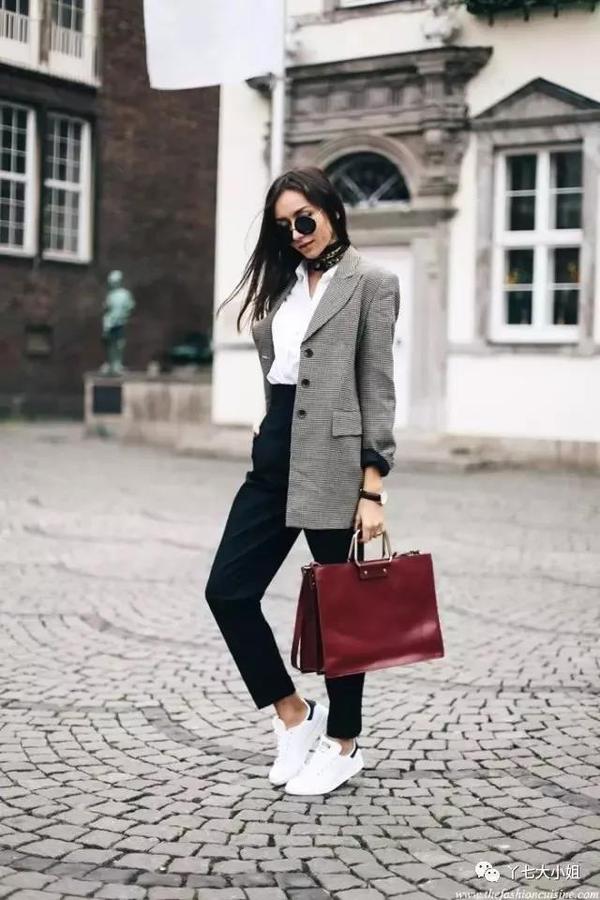 西装+烟管裤+运动鞋,上期西装篇已经讲过,运动鞋能很好地中和西装的严肃刻板印象,非常适合运用在日常的穿搭中。▼