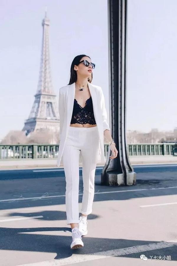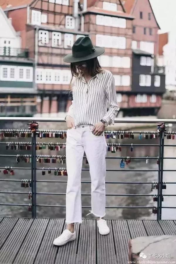 所以一到气温合适的季节,九分裤就格外受到青睐,而“九分裤+运动鞋”正是这个季节最受欢迎的街头组合。