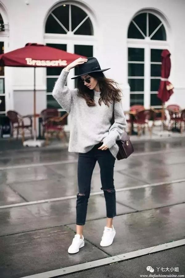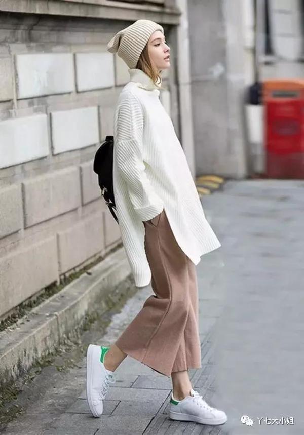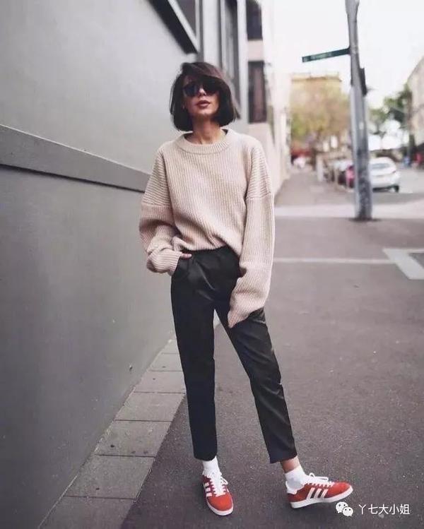 烟管裤+毛衣+运动鞋,是知性、温柔、青春的完美组合,小仙女们热爱的气质在这一起组合里都能找到,实在是太好看了~ ▼