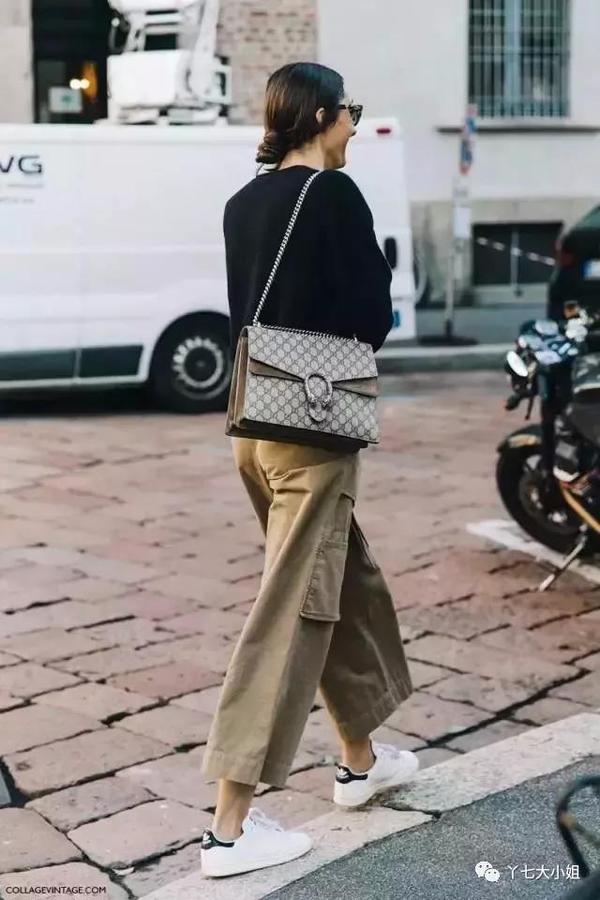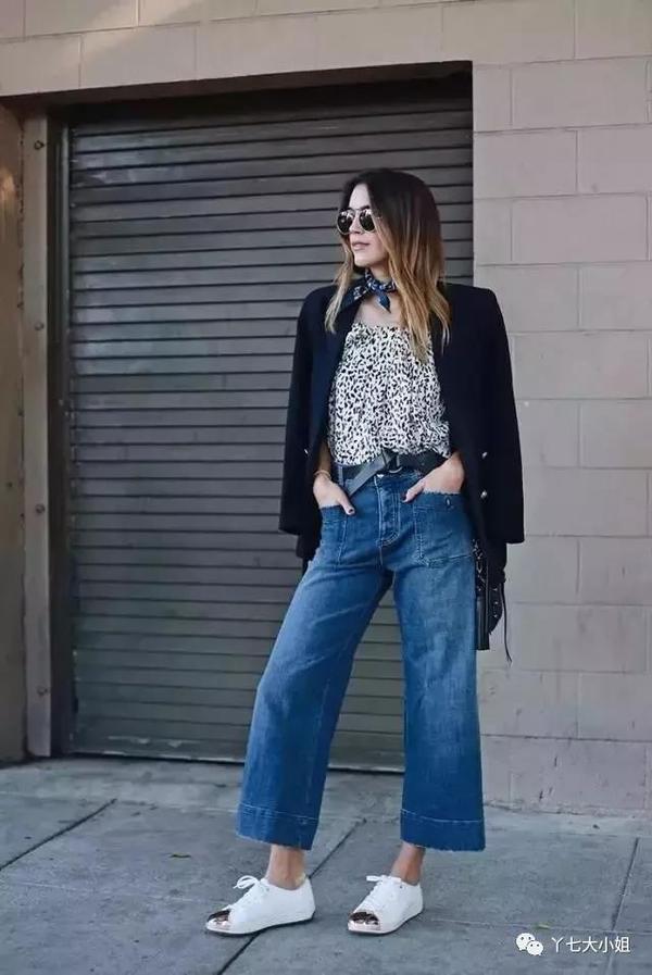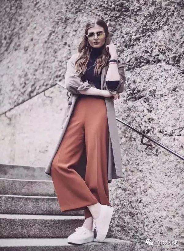 气质单品自然是少不了阔腿裤,阔腿裤不仅有气质,而且遮肉的功能超级强大,因此也非常受欢迎。九分阔腿裤“走路带风”的气质,配上运动鞋的轻快舒适,特别适合于“轻熟女”们打造青春又知性的街头穿搭。