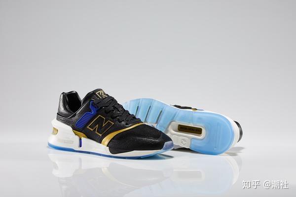 New Balance 997S 以黑色鳄鱼纹与鸵鸟皮拼接而成,搭配卡哇伊喜欢的皇家蓝,点缀金色 New Balance Logo 与细节装饰。