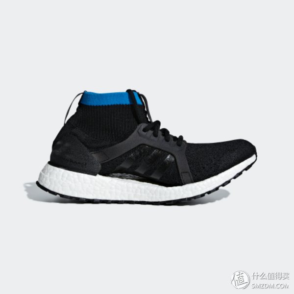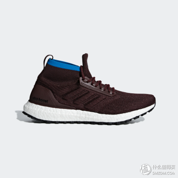 adidas Ultra BOOST在2017年秋季正式迎来全新升级版本——中筒版本 All Terrain 升级强化系列。在外型上最大的变化是采用了中筒设计,在鞋身方面采用上加入防溅水功能纱线的弹性透气 Primeknit 物料制作,并且制作出弹性十足的袜套设计,有助保持脚部时刻干爽,应对秋冬的各种恶劣气候变化,升高的脚踝部位使得跑者的每一步都能踩踏的更扎实、稳固。在鞋底方面,依旧搭载招牌全掌BOOST中底,而最主要的升级设计就是全新 Continental Stretchweb 外底,材质来自德国马牌轮胎厂,特别加深了鞋底坑纹,提供出色的抓地力以及扭动时的良好保护性。