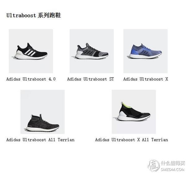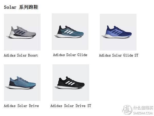 因为衍生的鞋款实在太多,我在这里通过它的系列将跑鞋进行分类,方便大家进行选购。目前阿迪达斯的跑鞋主要有四个系列:分别是Ultraboost系列、PureBoost系列、Solar系列和Adizero系列,如果大家对于矩阵中的鞋款有疑问的,可以在下一章中寻找这些跑鞋的类型和定位。