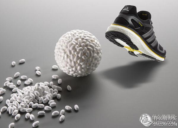 Boost科技,巴斯夫称其为Infinergy,是世界首款发泡热塑性聚氨酯(E-TPU)。抛弃了传统的EVA材料,将TPU的特性和泡沫的优势融为一体,使得整个中底具有出色的缓震性能。而且由于更出色的耐久性能,使得Boost中底在长时间运动方面相比EVA更具优势。