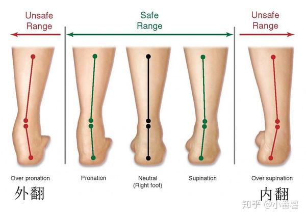 由上图可以清晰看到,通常来说,高足弓容易内翻,低足弓容易外翻。