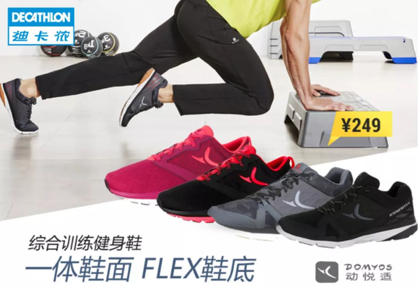 如果暂时预算有限,买一双下图迪卡侬DOMYOS ACC的综合训练鞋也是不错的选择。不过只此一款样式,没有更多选择了,毕竟综合训练鞋近几年才兴起,也只有耐克锐步这种国际大牌运动品牌在做了。