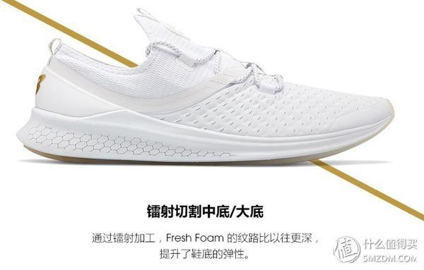 而到了Fresh Foam Lazr系列跑鞋中,fresh foam中底又有了全新的变化,采用了雷射切割技术,有效减少鞋侧壁材质,提升中底弹性,增加穿著舒适度。看图可以明显看出经过镭射切割,再也不是凹凸造型的fresh foam了。