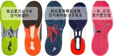 我们先来看一组图片, 不同品牌网球鞋的前掌(塑胶硬地网球鞋):