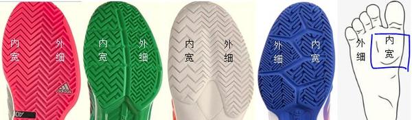 2. 脚掌内侧 (大脚趾侧)位置 橡胶线条 较宽, 而外侧位置 线条问题 变细
