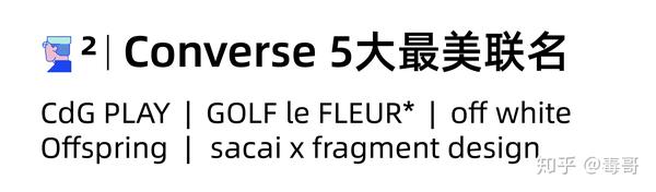 算综合实力,GOLF le FLEUR* 跟 Converse 的联名系列,妥妥的第一名,不管是看合作时长还是质量、数量。放第二,只因毒哥对CdG有私心 = =!