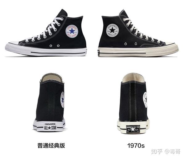 跟Chuck 70主要区别是:1、黑底三星标;2、车线在交汇处更显细尖