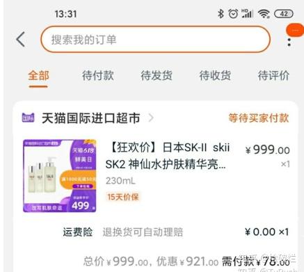 78块钱的SK-II神仙水,送给女朋友当生日礼物了,她还以为我原价买的,夸我会体贴人了,其实才几十块钱,嘻嘻嘻。