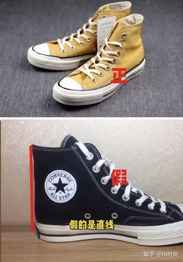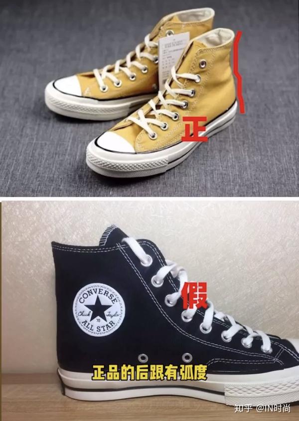 6、 看鞋后跟弧度:正品匡威1970高帮款,鞋后跟都是有弧度,看起来有一点点褶皱感,而精品品的鞋后跟是没有弧度呈直线的。