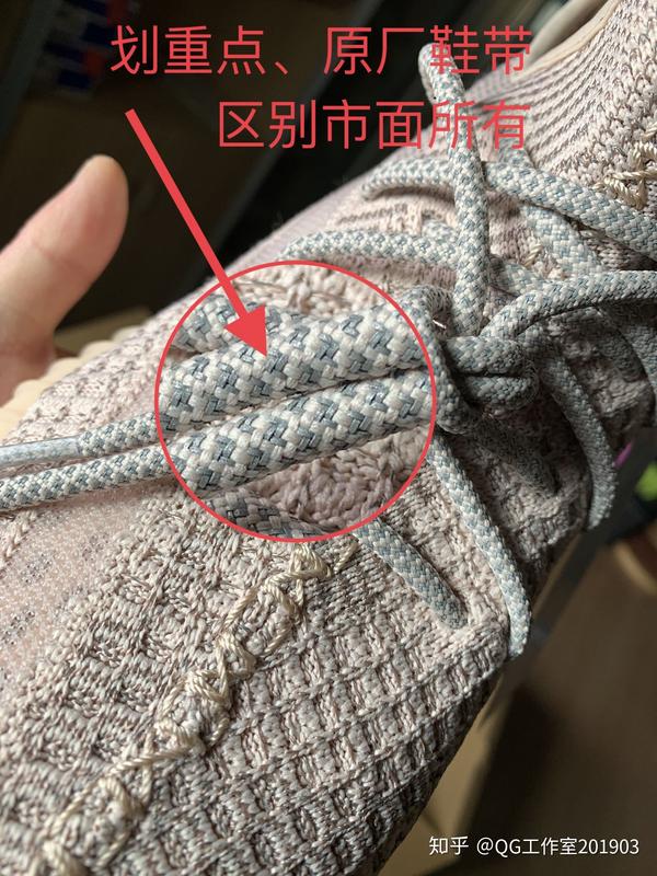 鞋带是鉴定350品质的重要环节。如图,350的鞋带,针织密度。一目了然,区分市面的垃圾版本!