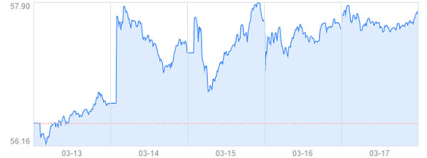 ▲3.15前后两天耐克股价(来源:百度股市通)。
