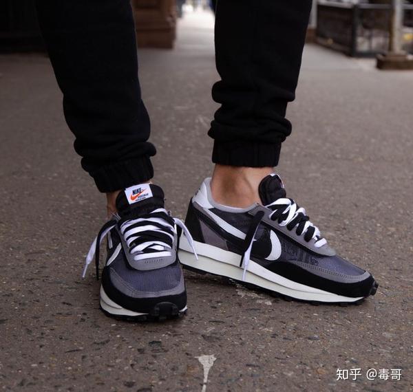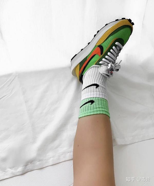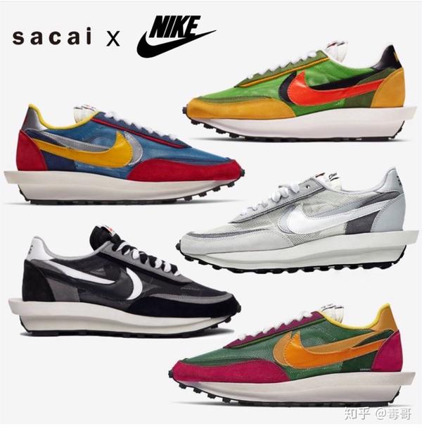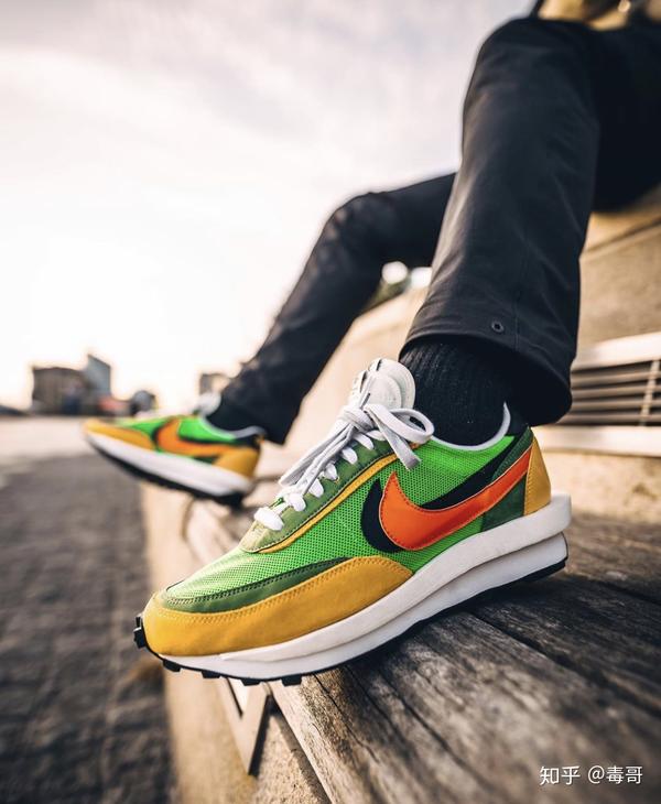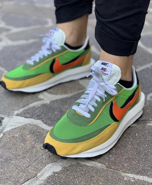 Sacai x Nike LD Waffle,鞋型设计上大胆,配色很骚,上脚贼好看,LOOK!建议买彩色撞色款式,服饰上搭配黑色,妥妥的高级感。