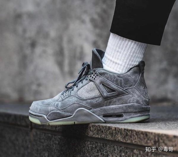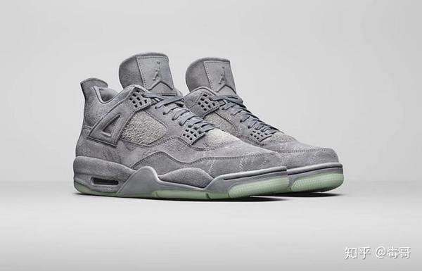 最出名的KAWS x Air Jordan,就是来自AJ4,除了低调灰色+薄荷绿的配色,反毛皮的加入更让其充满质感,目前市场价在1.3W,极具收藏价值。