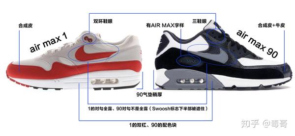 毒哥跟大家聊一下, 90和1的区别,也很好识别,主要有6处(鞋后跟暂没标注,很好认)。