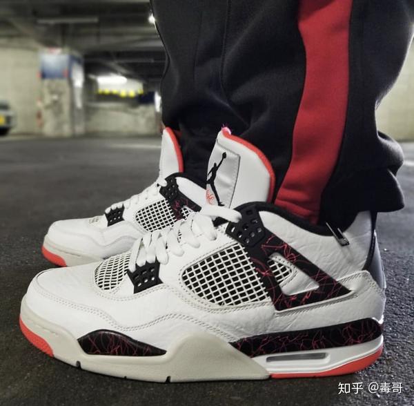 AJ4 目前主流的颜色黑红、热熔岩、大理石,售价在1.3k—2k居多,推荐几个配色供大家参考,个人喜欢灰色,很有质感。AJ4穿起来很舒服,除了热,当然夏天你穿什么都会热。