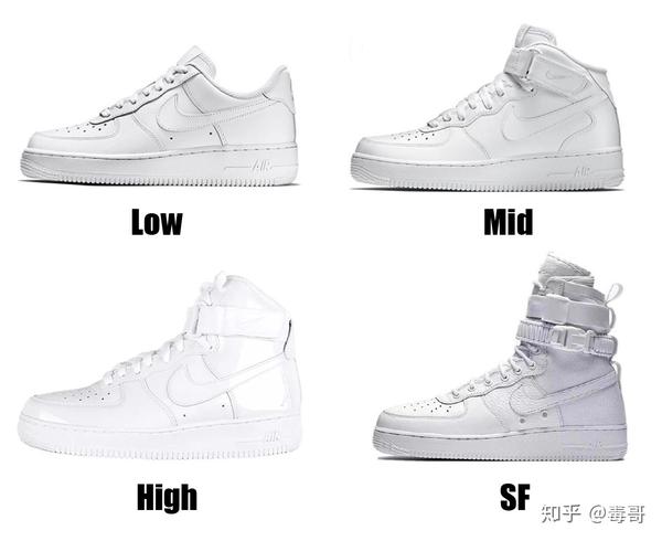 大家都知道,名称中出现Low、Mid、High就是对应高度,当Air Force 1出现了SF的字样的鞋,就更高了,这里只谈高度,了解一下就好。