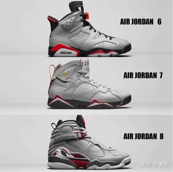 PS:识别AJ最好的方法,就是看侧面,比如6-8三款的区别,侧面一目了然。