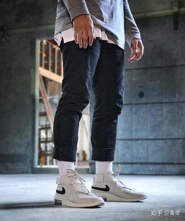 高街潮流风格跟FOG十分和谐,因为本身鞋子的设计简约有质感,所以服装上低调简约的色底,反而更契合。