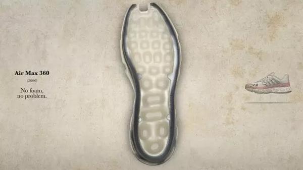 Nike达到了全掌气垫的里程碑后依然不知足,在Air Max 360上不再使用发泡材质作为中底,而是创新的采用了笼式全掌气垫(caged air),这也是在Air Max史上第一次出现笼式气垫----以往笼式气垫只应用在zoom air上。