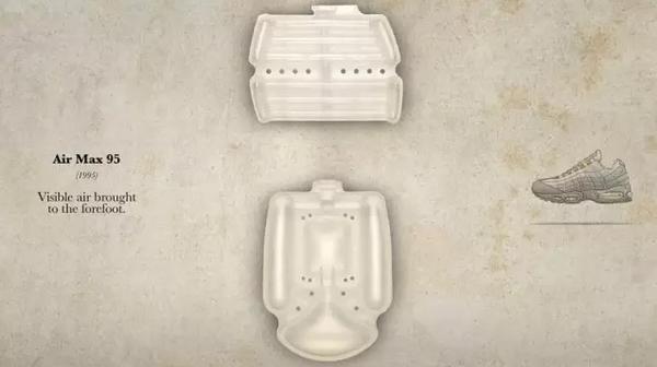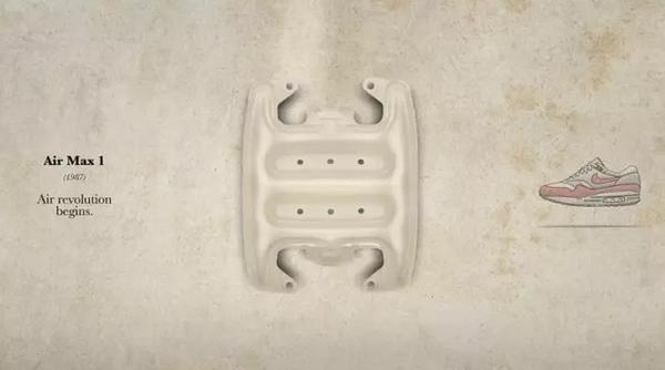 1987年3月26日是Air Max 1发布的日子。幻想家 Tinker Hatfield 想让人的双足凌驾于空气之上,因为将高压气体至于鞋底可以同时提升鞋底缓震性能与稳定性,使跑者更省力且获得更好的保护,尤其是对膝盖的保护。于是他从巴黎的蓬皮杜艺术中心的建筑设计中汲取灵感,将Nike跑鞋中底周围的发泡部分去掉,使用大面积的 Air 气垫替换,这款作品就是经典的Air Max 1。