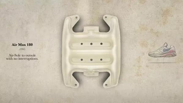 Air Max又迎来了一次进化,这次去掉了气垫和地面之间的发泡减震材质,在这款Air Max 180中可以很清楚的看到,气垫下面就是透明橡胶鞋底,做到了180度可见。