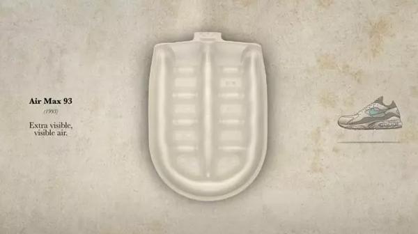 随着Blow Molding塑性技术的成熟,Nike离全掌气垫又近了一步,Air Max 93正是这一技术的先行者,也为以后的全掌气垫Air Max奠定了基础。
