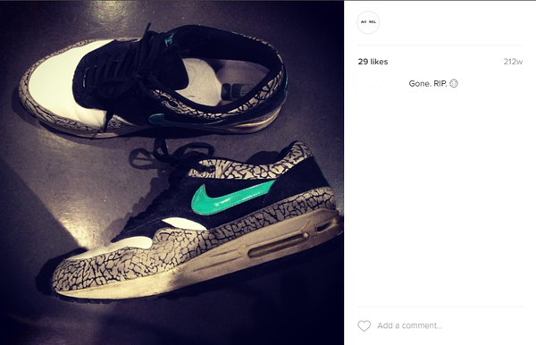 我自己本身认为最好看的,还是这一双,幸好今年就是复刻这双,就是这一双atmos air max 1,这鞋我穿坏了都不舍得丢。这鞋,已经坏了4年了,时间过得好快。
