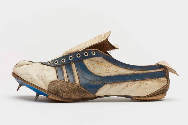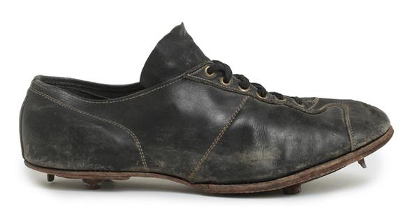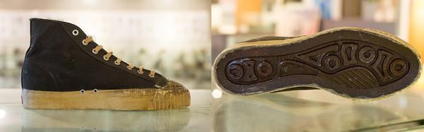 这双鞋是1925年最早获得专利的短跑鞋,为中短跑项目设计。山羊皮鞋面、染色皮革鞋钉底板和大底,鞋钉则是铬合金的。