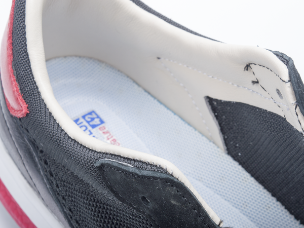 201第三个重要特点是采用头层牛皮内里,你可能穿过很多耐克和阿迪,但是你有没有穿过头层牛皮的跑步鞋?在奢侈品领域,用头层牛皮作为作为运动鞋内里,并不罕见。但是售价绝对是非常昂贵的。而普通运动鞋产品,采用头层牛皮内里则极为罕见。我在一个意大利品牌网站看到他们的高端复古型号采用真皮内里,效果很不错,售价折合1500元人民币左右,我就从意大利网购了一双,寄回来交个专家分析,我惊呆了,说这个是头层牛皮的,质量非常好。我就决定咱们201就用这个内里,工厂估计成本要增加几十块,但是头层牛皮像肌肤一样柔软的特性,大概是很多人从来没有体验过的,我觉得这个成本增加得物有所值。