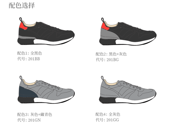 但是现在市场上飞织鞋太泛滥了,如果小白计划完全按市场的方案做就没有意义了。我觉得应该有创新才行,结合现在市场上一直流行的反绒皮网布复古跑步鞋,我认为最好的办法是把两者的特性结合起来,也就是飞织 +反绒皮。这是我确认201必须要有的第二个特性。