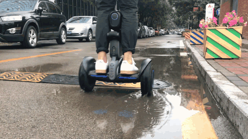 如果实在躲不过怎么办?那就骑“车”出行!整个人都离地了,应该就不怕水坑了吧。