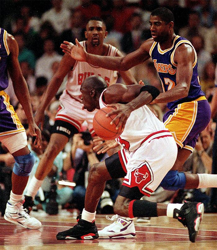 作为最经典的配色方案,黑红永远是毫无争议的排在第一。每逢黑红配色的复刻,球鞋圈必然都会被掀起一阵血雨腥风。除了黑红配色在 Air Jordan 正代中的经典地位,作为乔丹的第一双冠军战靴,AJ 6 一直是鞋迷津津乐道的一款球鞋,在球迷以及球鞋粉心中有着不俗的地位。(虽然,AJ 6易于穿搭也使得该款长盛不衰,但是生硬的脚感目前更多适用于日常穿着,实战的话还是尽量避免。)
