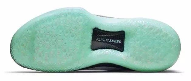 鞋身以白色为主体,辅以清新的薄荷绿内衬、外底和黑色中底等细节共同构成,再采用石斑纹理装饰后跟,而亮点在于鞋舌内侧的“心之所向”“身之所往”八个书法大字,致敬中国传统的玉石文化;鞋垫的 LOGO则表明了这双鞋的主人身份。