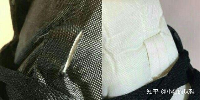 真AJ(左边的)只是简单的把鞋舌布面割开,作为鞋带固定位。这个操作可一点都不高端,但却是正品的做法。假鞋在原有的布面上缝了一小块布作为鞋带固定位。精品品看上去更顺眼些不是吗?