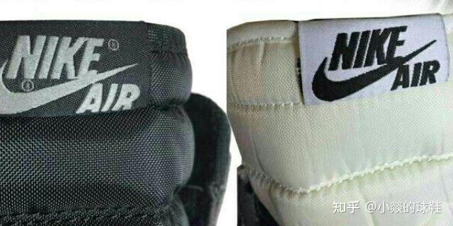 AJ鞋的里面有一个印有“Jumpman”的尺寸标签,假鞋的Jumpman标签被缝在了鞋舌的背面,真鞋的标签则缝在鞋的里侧。