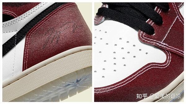 红色部分传统的红色缝线被白色所取代,使得红色部分线条感更为明显。后跟处 Michael Jordan 的签名以及外底处星星图案则堪称亮点。