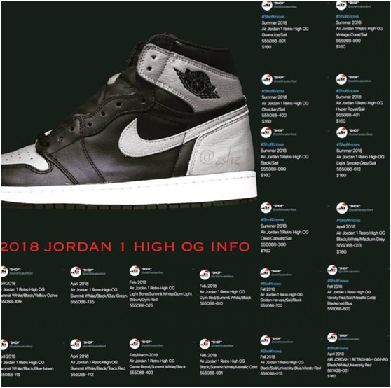 今天各路大神同时曝出了一条消息,从现在开始到 2018 年里,有超过 30 双 AJ 1 OG 要发售!其中不少配色已经曝光,势必要炸掉明年的鞋市了。