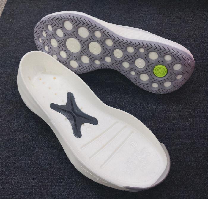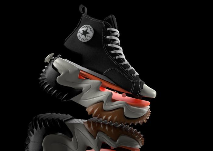 最后一双是名为Aeon Active CX的创新鞋款,休闲老爹鞋的造型,中底很夸张,感觉和ACW的比较相似,鞋面比较普通,侧面使用了匡威的“星箭标”,整体感觉还可以,可能中底的材料会是他的卖点吧。