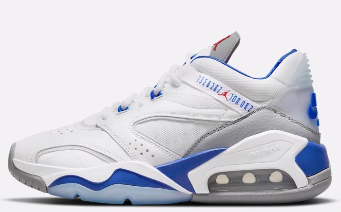 外底的融合了AJ11还有AJ6代以及AJ3代,领口位置的提带,上面写着这双鞋的名字:“Jordan point lane”,这里的设计和AJ11鞋舌上的提环是一样的。