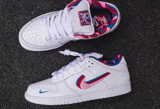 DUNK SB 今年势头猛涨,上个月刚刚市售的 Parra x Nike SB DUNK Low 也是话题鞋款,艺术家 Parra 将 Swoosh 通过标志性的蓝、红、橘、粉刺绣叠加营造抽象艺术,正因为这种视觉有些裸眼 3D 的神奇效果,人送外号「裸眼3D款」,当然,大家最关心的市场价格同样不容小觑,3k 起步的市场价还只是普通尺码,黄金尺码和小码更是直接逼近 5k,实属凶悍。