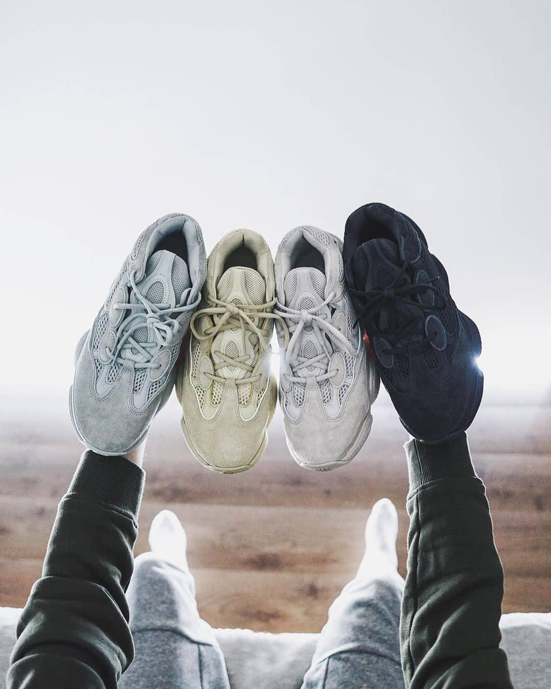 2018新系列Yeezy 500系列配色一直运用侃爷特色的大地色色调,多种材质的叠加使得鞋子很有层次感,2018年发售的Yeezy 500货量基本都不小,入手难度不高。