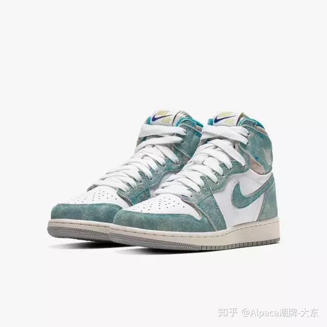 今年不知为何,湖水绿颜色的球鞋都特别火。无论是球鞋品牌发布的新款当中,还是最热门球鞋名单中,都有湖水绿颜色的球鞋的踪影。并且这款 AJ 1 “Turbo Green”与一直备受瞩目的Tiffany Blue非常相像,极富优雅韵味的绿色同白、灰两色形成对比,