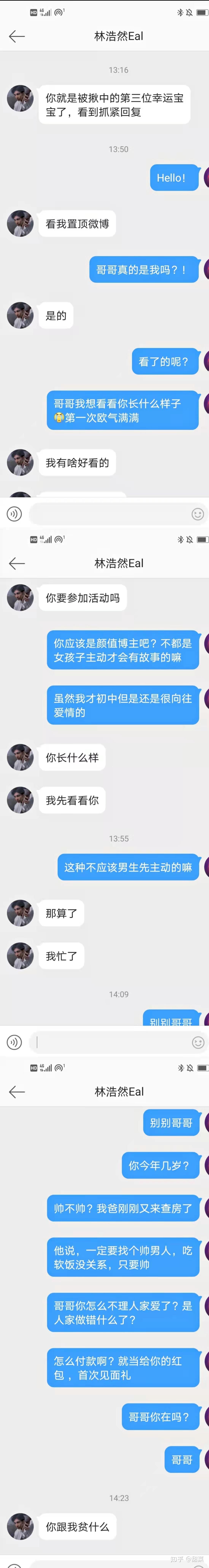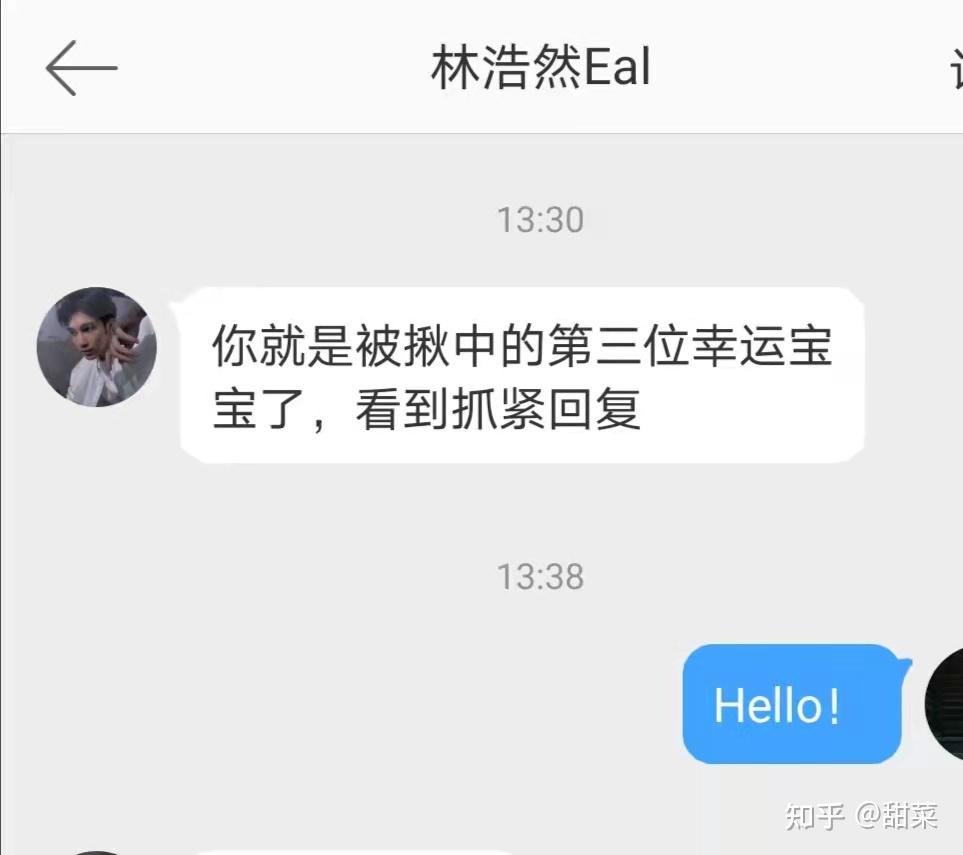 其中有一个名叫“林浩然Eal”的博主,在2021年9月18日的13:30分给我的大号发了一条我中奖的消息: