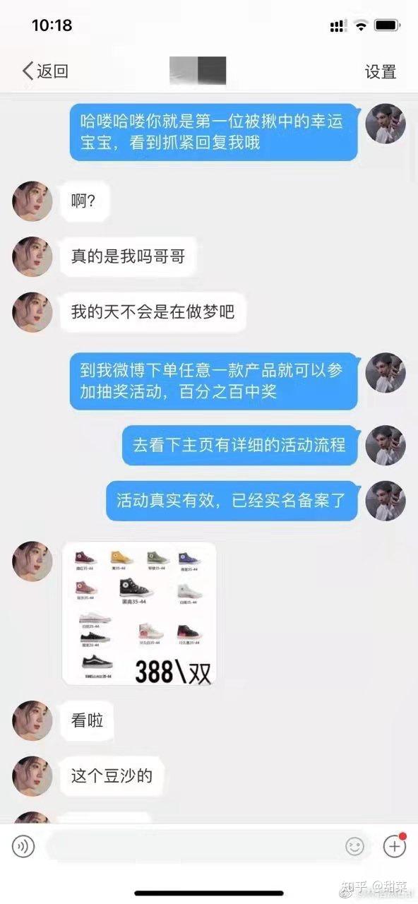 大概意思是,你下单买一双他所说的价值388的名牌鞋子,而后获得抽奖资格
