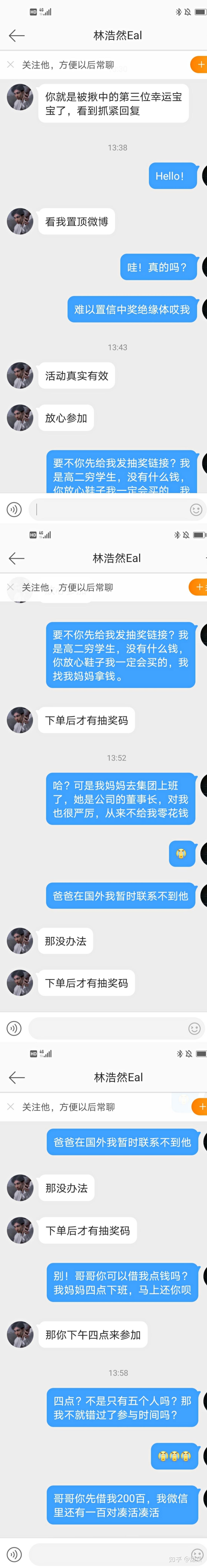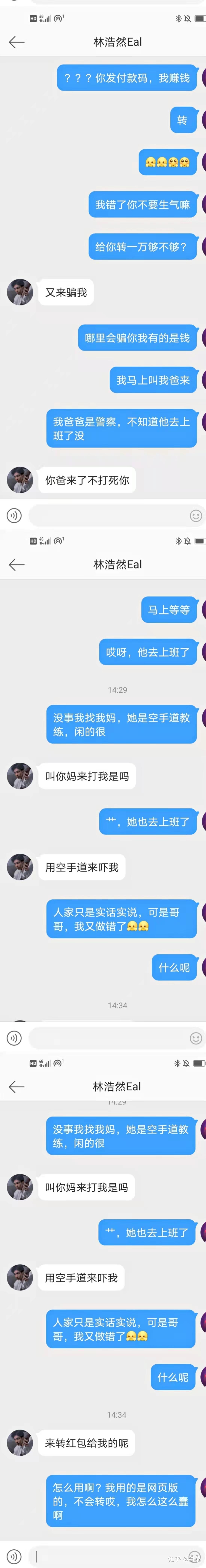 于是我抱着怀疑的心态和“善良的哥哥”聊了起来,反正我是不会给钱的,穷学生真的没钱。