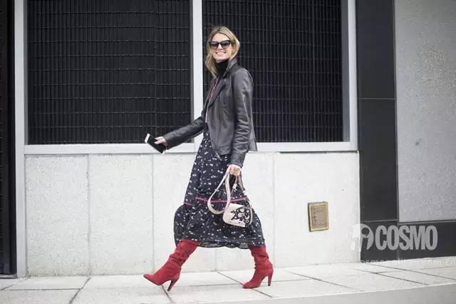 中跟靴特别适合搭配九分裤和midi裙,可以穿一条裤脚宽松的长裤,只露出鞋面的一部分,这叫不经意间的时髦。